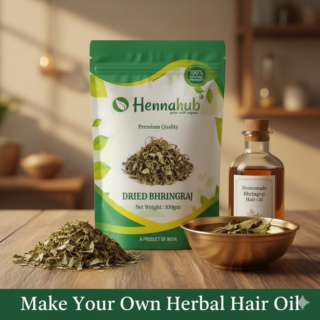 ? Product Overview Hennahub Dried Bhringraj 100gm Pack offers premium quality whole raw Bhringraj (Eclipta alba) leaves, traditionally known as...